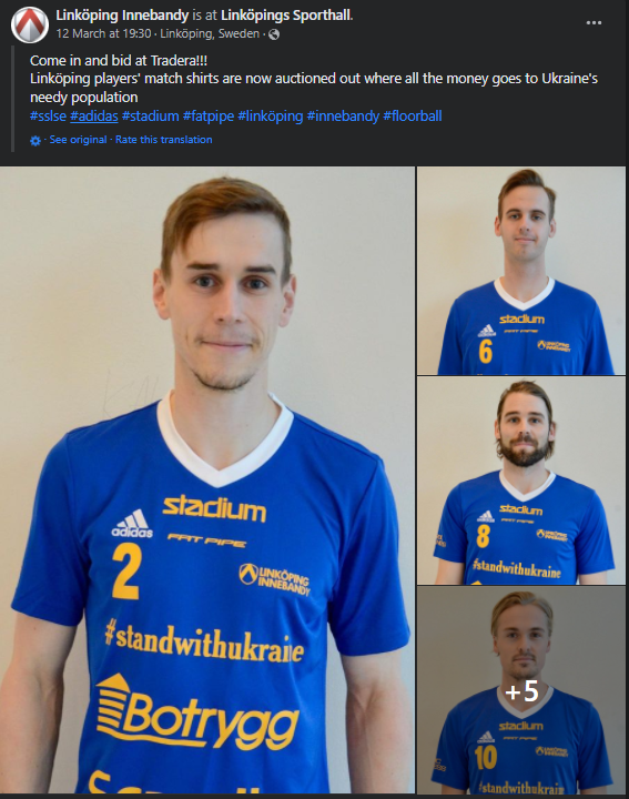 Jönköpings IK (JIK) women’s team collected 41 bags of clothes, shoes, blankets and hygiene products for Ukrainians. This is the club where Alina Zelena and Snizhana Dubyk from Ukraine recently played. The SSL players and leaders donate all or part of their JIK salaries in March to help Ukrainians flee to neighboring countries and inside Ukraine. Malmö raised funds for children from Ukraine at their home matches. Lerum collected almost 8,000 Swedish crowns and handed the money over to UNHCR organisations, which deals with immigrants from Ukraine. The flag of Ukraine was shown on all the boards before the match of Endre. Storvreta player Otto Weidman raised his game shirt after scoring a goal and had another shirt under it, with a flag of Ukraine and text against war. Linköping held an auction of special players’ match jerseys with the words “#standwithukraine” to raise money for people in Ukraine after their recent matches and also had IFF Central Board member Tamuz Hidir speak to the crowd of 1400 about his story of escaping Ukraine after the invasion began.