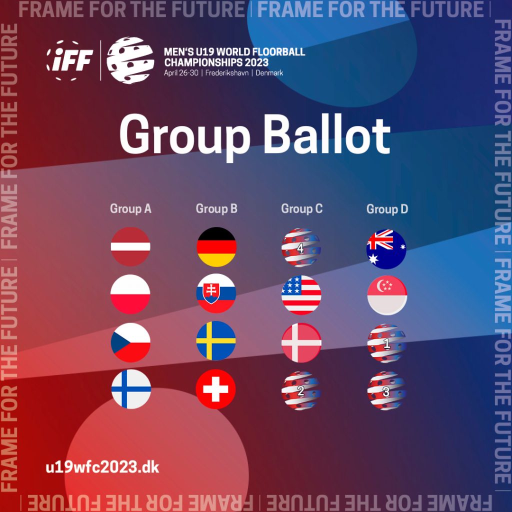 The group ballot for the 12th Men’s U19 World Floorball Championships took place earlier today. Now all four groups have been decided.
