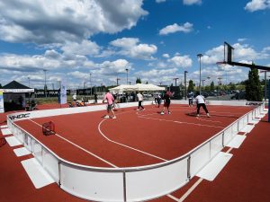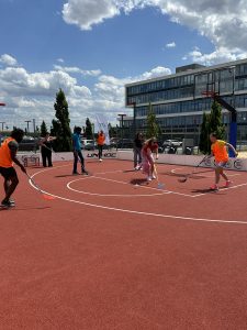 This summer, 2023 the German Floorball Federation is organising the second edition of the Street Floorball Tour which brings outdoor floorball to the heart of seven German cities. Between two tournaments close to PUMA headquarters they set up a floorball rink at the PUMA premises including a speed shooting station. The PUMA compound hosts a sporting area including a basket ball court with an fix installation of the Gerflor PowerGame+ surface. The same surface is recommended by IFF for outdoor floorball, therefore perfect for this occasion.