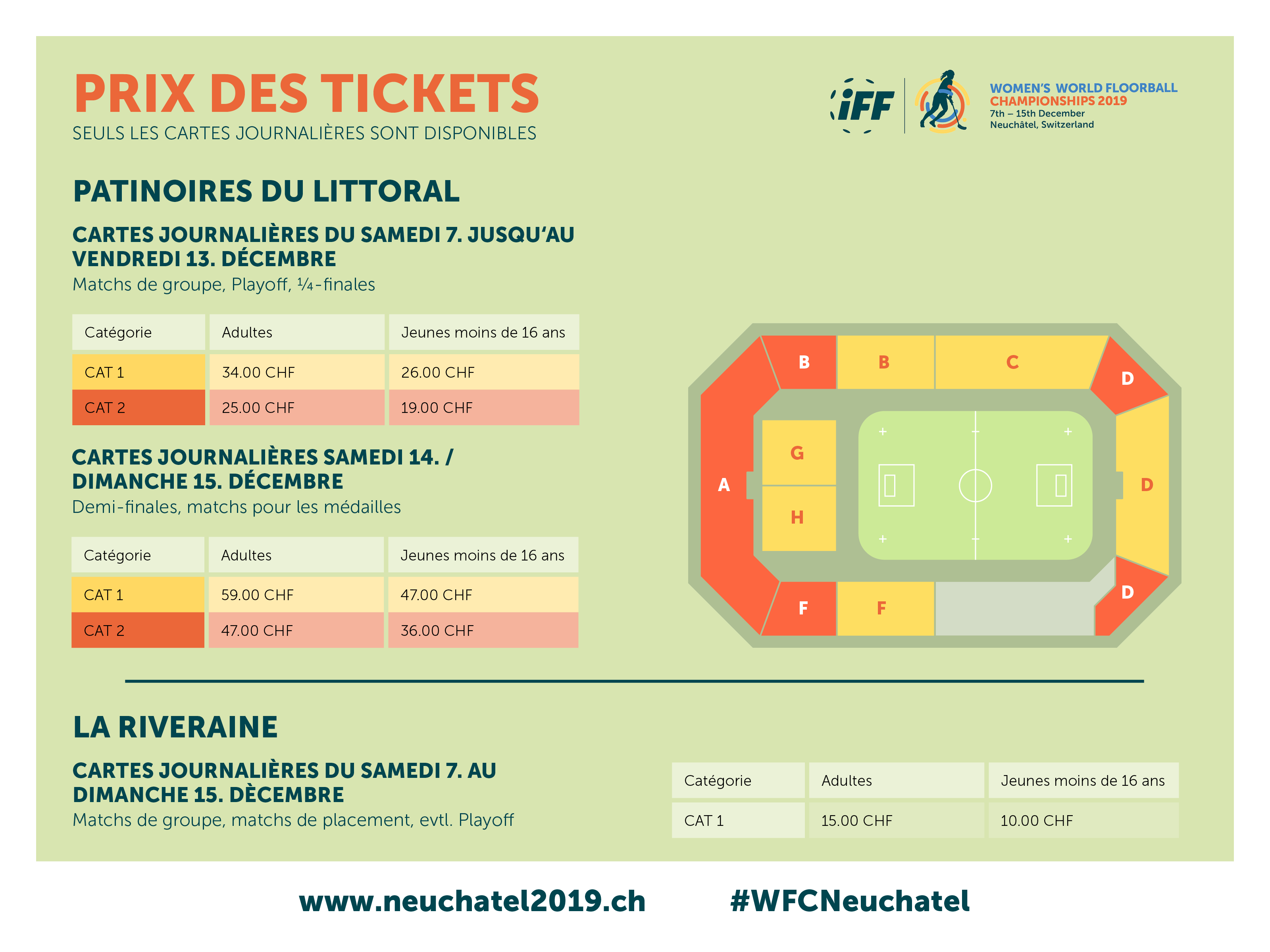 - Les commandes de groupes dès 20 billets peuvent se faire sous ticketing@swissunihockey.ch